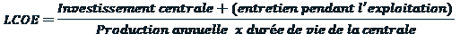 Le coût de revient, aussi appelé LCOE, se calcul de la manière suivante :